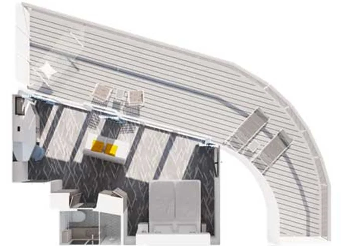 | VEKO - Kajuta s terasou 20 m² + balkón 13 m² so stoličkami a váľandou. 15. paluba. Max 2 osoby. | 5 612 € 5 612 € za osobu | ||